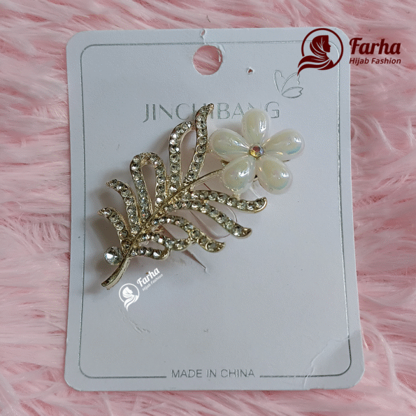 Flower Crystal Brooch – Premium quality flower-shaped brooch with sparkling crystals. Perfect for hijabs, scarves & outfits. Durable pin lock, elegant design.