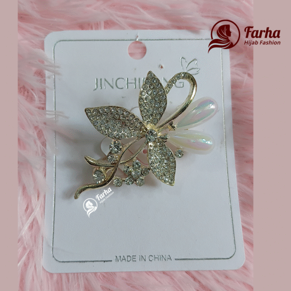 Flower Crystal Brooch – Premium quality flower-shaped brooch with sparkling crystals. Perfect for hijabs, scarves & outfits. Durable pin lock, elegant design.